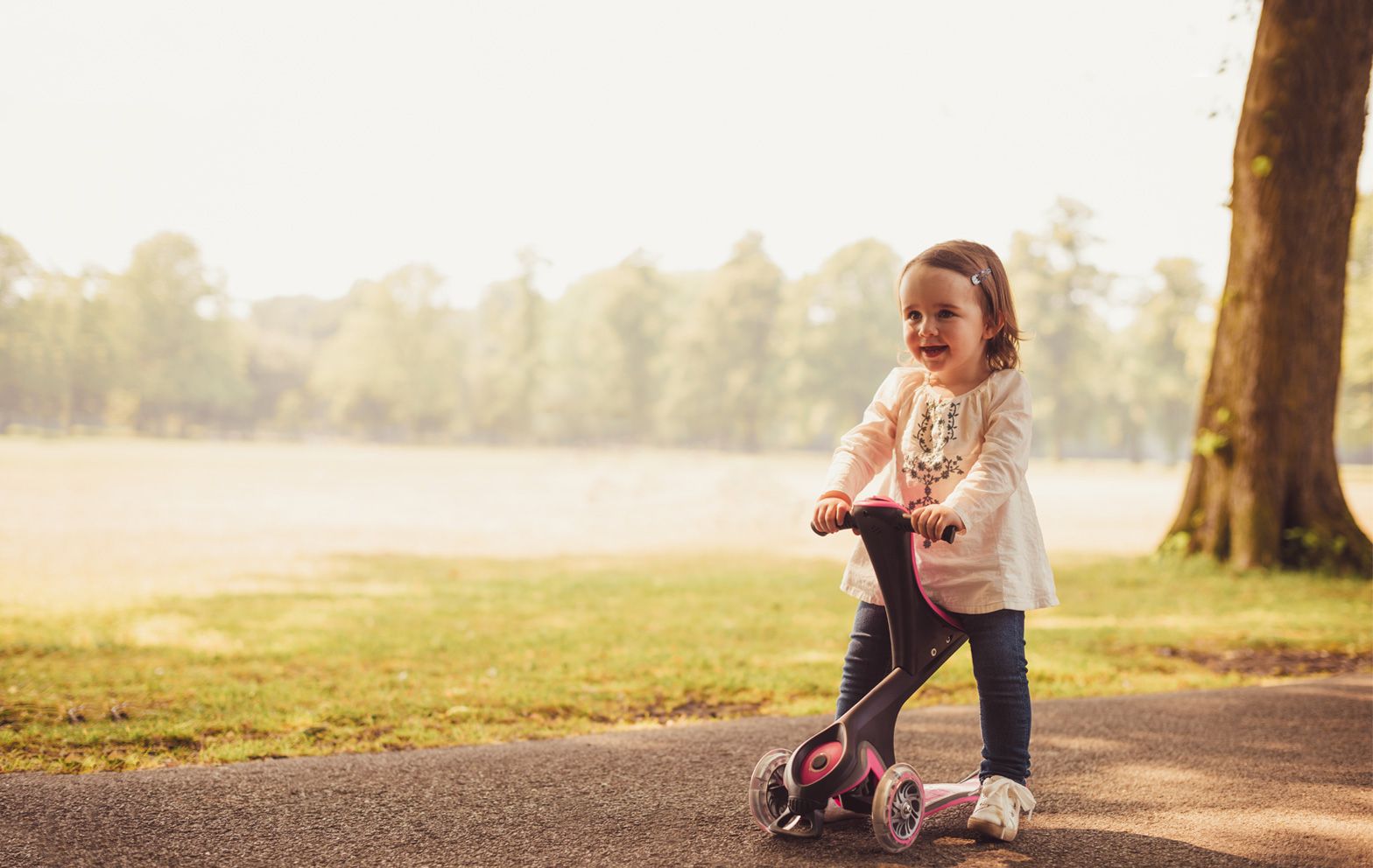 All our GO•UP toddler scooters with seat are super easy to assemble and transform across the different modes! Go from ride-on mode to walking bike mode with just a push of a button! Our GO•UP DELUXE kids scooters with seat go one step further, coming with a 100% tool-less design.