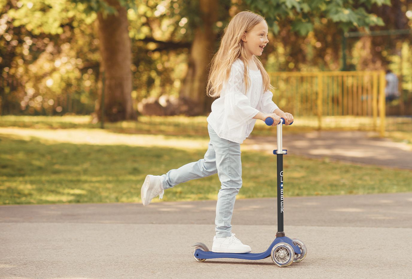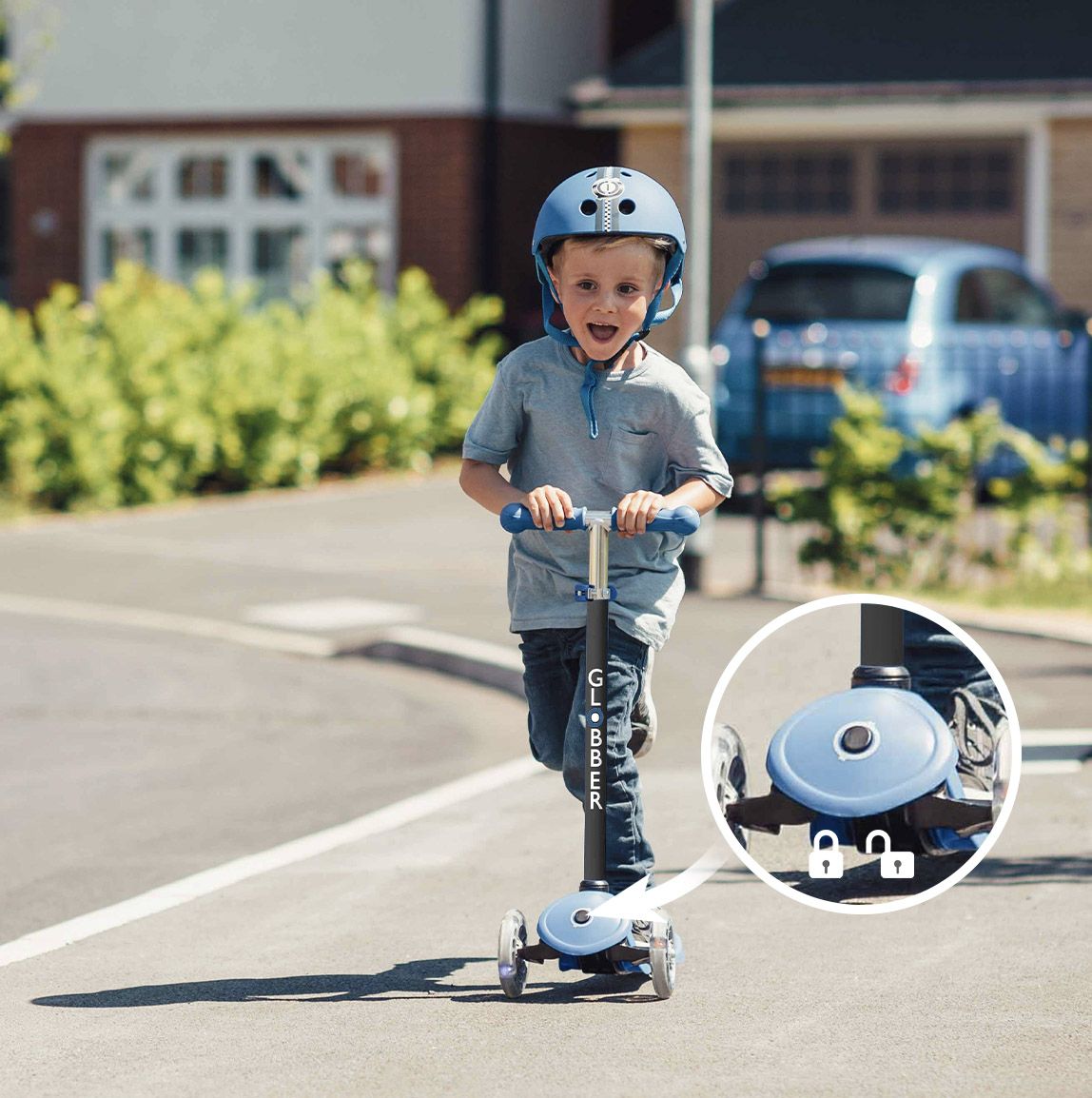 Safety comes first for our toddler scooter with seat. That’s why all our GO•UP kids scooters with seat come with a reinforced structure, enabling the scooter deck to support up to 50kg! The patterned deck offers even more grip too!