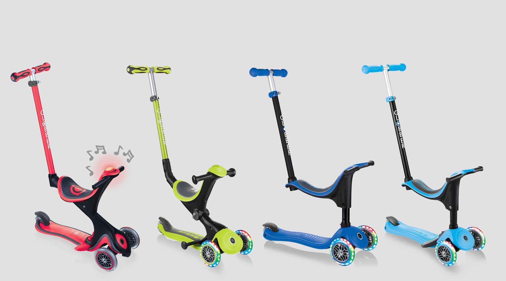 Check out our GO•UP SPORTY, SPORTY PLUS, COMFORT & DELUXE range of scooter with seat for toddlers. GO•UP COMFORT & DELUXE scooters with seat come with an extra-large, 3-height adjustable seat; GO•UP SPORTY scooters with seat come with a 2-height adjustable seat, and all 4 collections offer light-up scooter options!